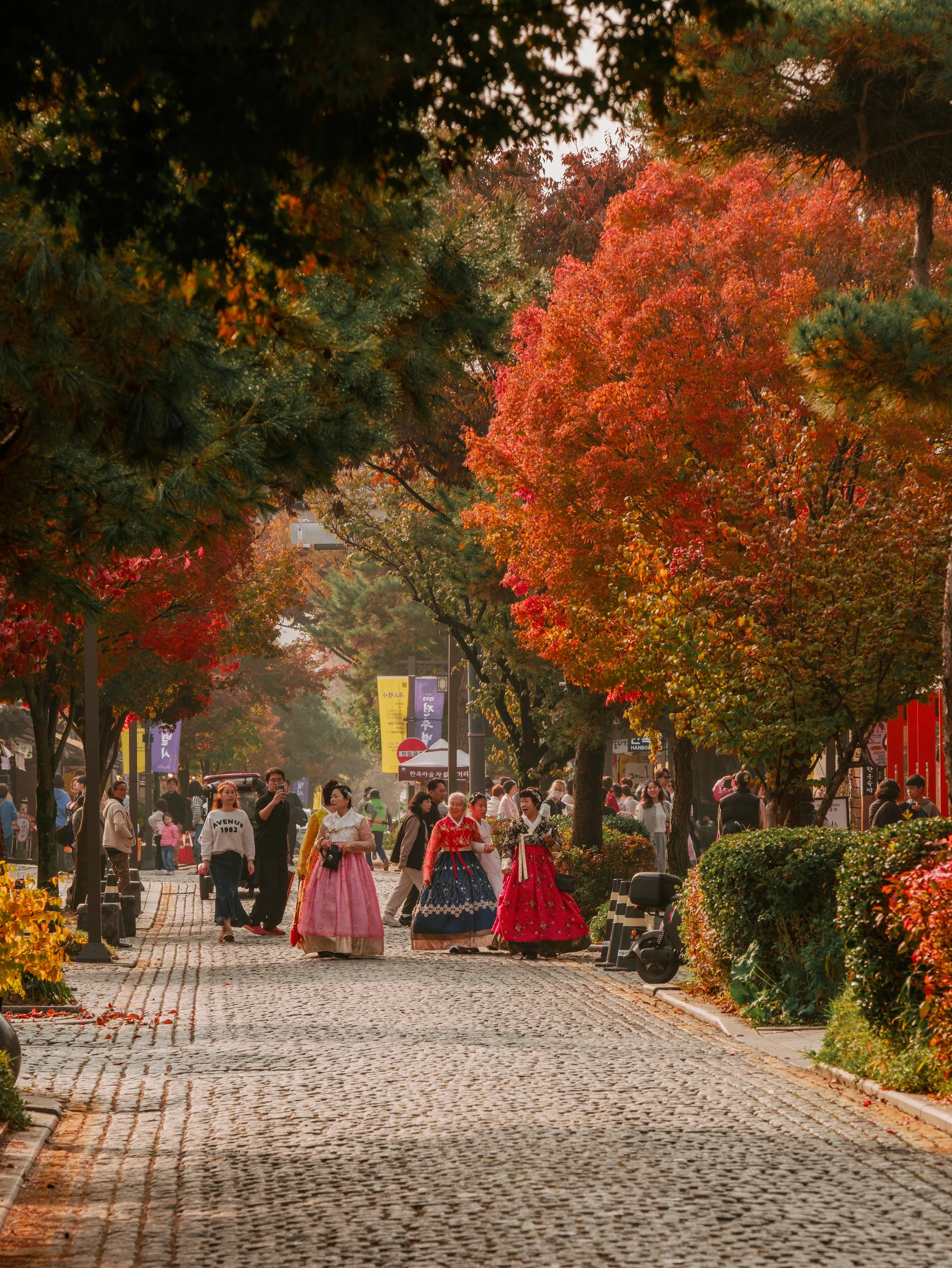 Weiter geht es in die charmante Samcheong-dong Strasse, die besonders im Herbst mit ihren goldgelben Ginkgo-Bäumen verzaubert. Kleine Boutiquen, Galerien und Cafés verleihen dem Viertel eine entspannte, künstlerische Atmosphäre.