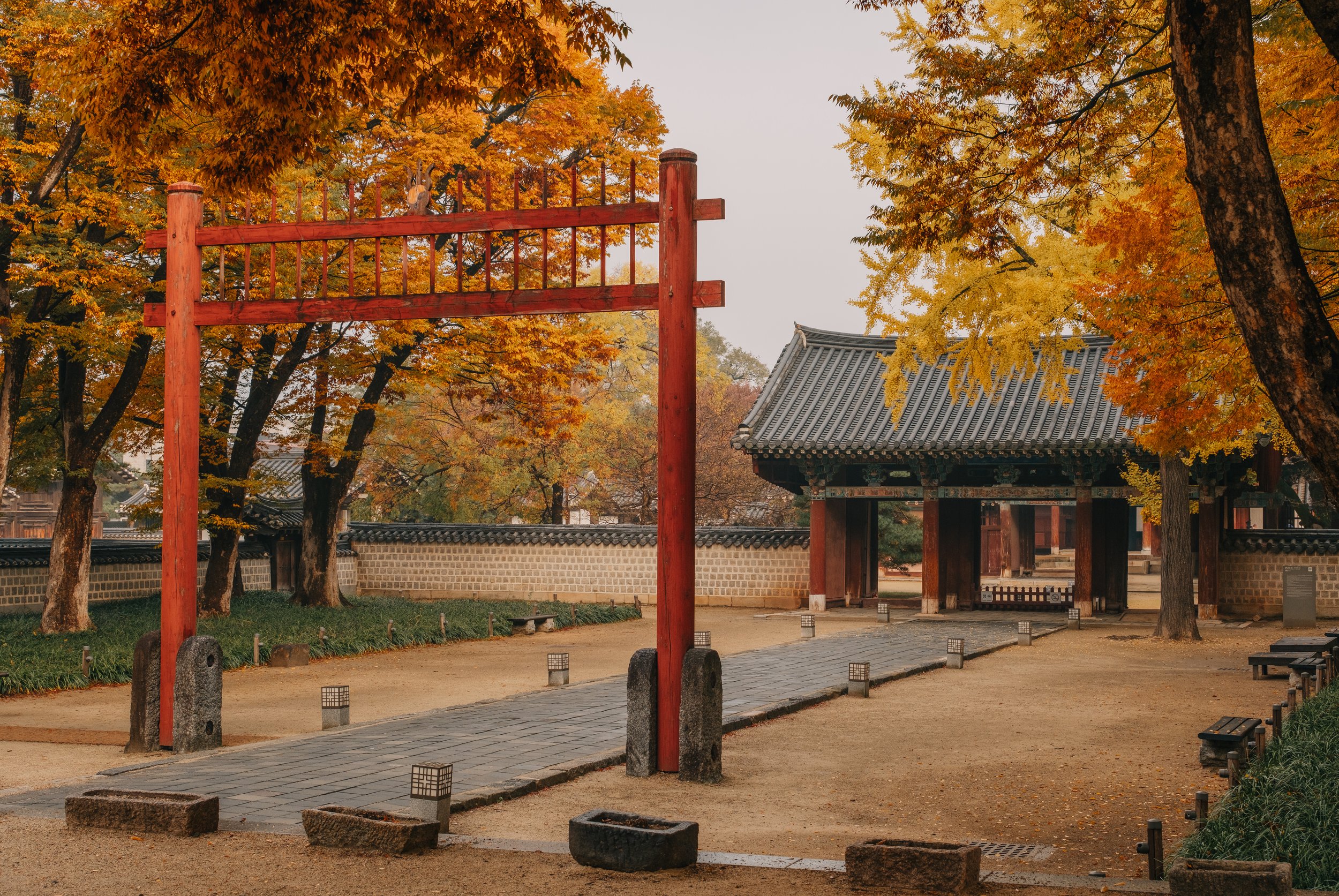 Wir beginnen den ersten vollen Tag in Korea bei Sonnenaufgang im Hanok-Viertel Jeonjus und den zwei Tempelanlagen Gyeonggijeon und Hyanggyo und halten die wundervolle frühmorgendliche Herbstatmosphäre fest.